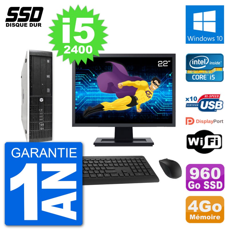 PC HP 8300 Elite SFF Ecran 22" Intel i5-2400 RAM 4Go SSD 960Go Windows 10 Wifi
