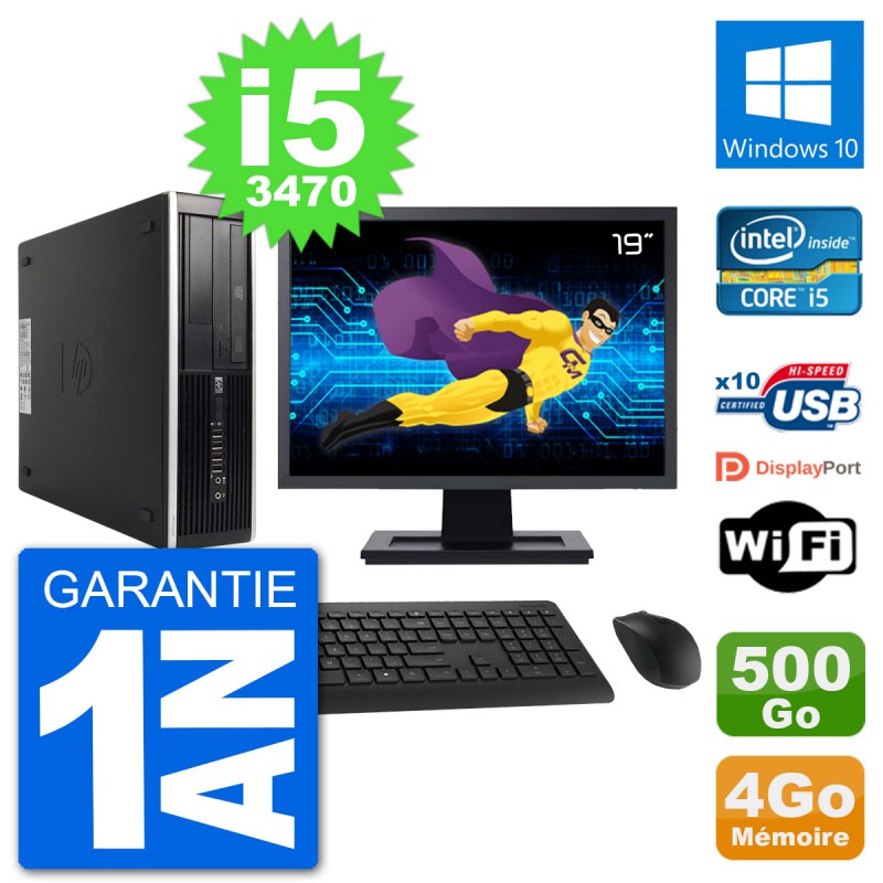 PC HP Elite 8300 SFF (Slim) - Intel Core i5-3470 3.2 Ghz (6 Mo) - 4 Go DDR3 - Disque Dur 3,5" 500 Go - Graveur DVD - Clef Wifi USB - Windows 10 - Livré avec Ecran 19" + clavier + souris (Marques et modèles variables) - Garantie 1 an.