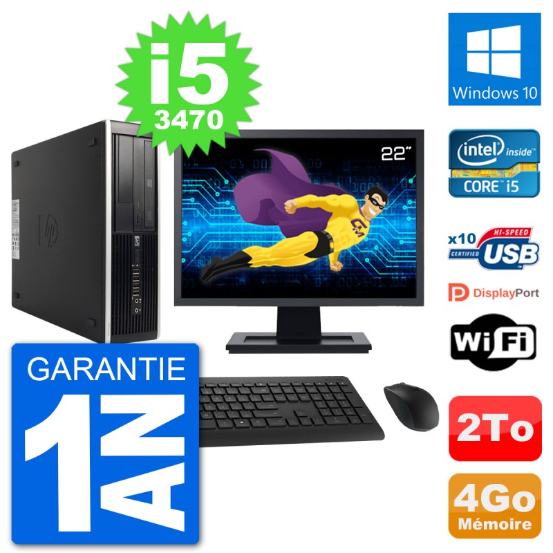 PC HP 8300 SFF Ecran 22" Intel i5-3470 RAM 4Go Disque Dur 2To Windows 10 Wifi