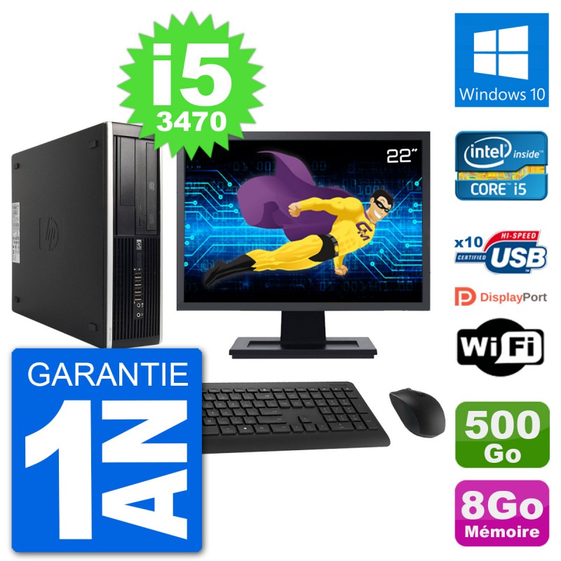 PC HP 8300 SFF Ecran 22" Intel i5-3470 RAM 8Go Disque 500Go Windows 10 Wifi