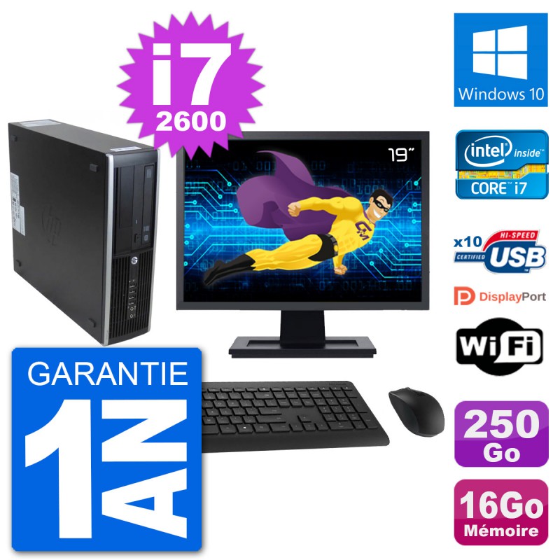 PC HP Elite 8300 SFF (Slim) - Intel Core i7-2600 3.4 Ghz (8 Mo) - 16 Go DDR3 - Disque Dur 3,5" 250 Go - Graveur DVD - Clef Wifi USB - Windows 10 - Livré avec Ecran 19" + clavier + souris (Marques et modèles variables) - Garantie 1 an.