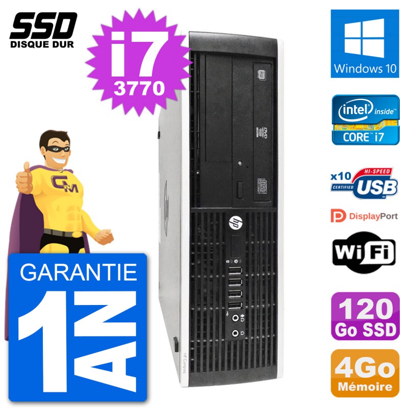 PC HP Elite 8300 SFF (Slim) - Intel Core i7-3770 3.4 Ghz (8 Mo) - 4 Go DDR3 - Disque Dur SSD 120 Go - Graveur DVD - Clef Wifi USB - Windows 10 - Garantie 1 an.