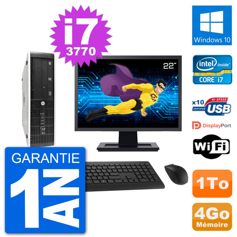 PC HP 8300 SFF Ecran 22" Intel i7-3770 RAM 4Go Disque Dur 1To Windows 10 Wifi