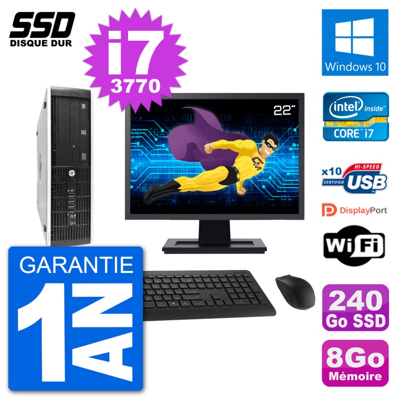 PC HP 8300 Elite SFF Ecran 22" Intel i7-3770 RAM 8Go SSD 240Go Windows 10 Wifi