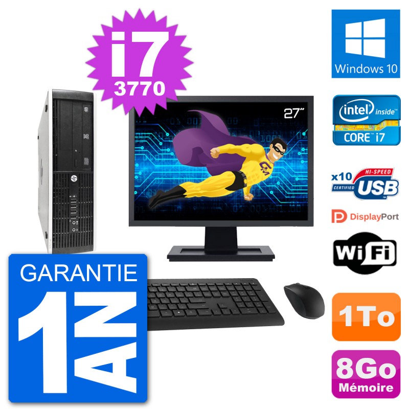 PC HP 8300 SFF Ecran 27" Intel i7-3770 RAM 8Go Disque Dur 1To Windows 10 Wifi
