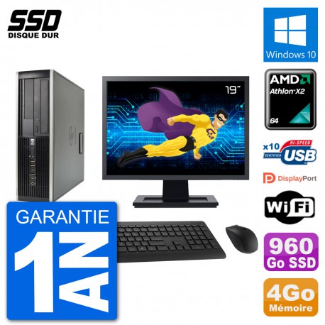 PC HP 6005 SFF Ecran 19" AMD Athlon II X2 B24 RAM 4Go SSD 960Go Windows 10 Wifi