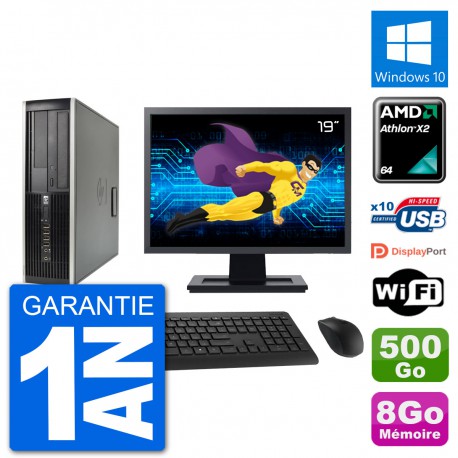 PC HP 6005 SFF Ecran 19" AMD Athlon II X2 B24 RAM 8Go 500Go Windows 10 Wifi