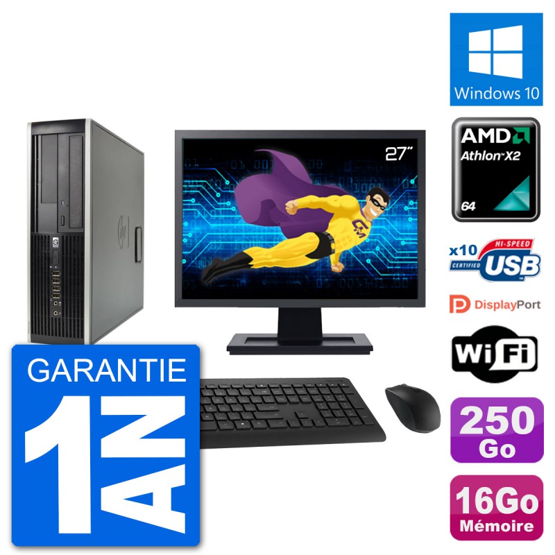 PC HP 6005 SFF Ecran 27" AMD Athlon II X2 B24 RAM 16Go 250Go Windows 10 Wifi