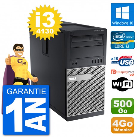 PC Dell Optiplex 9020 MT (Moyenne Tour) - Intel Core i3-4130 3.4 Ghz (3 Mo) - 4 Go DDR3 - Disque Dur 3,5" 500 Go - Graveur DVD - Clef Wifi USB - Windows 10 - Garantie 1 an.