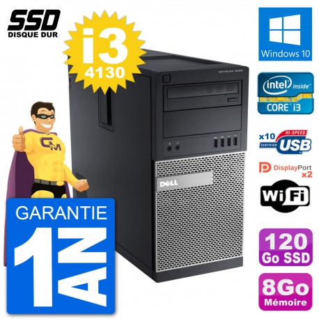 PC Dell Optiplex 9020 MT (Moyenne Tour) - Intel Core i3-4130 3.4 Ghz (3 Mo) - 8 Go DDR3 - Disque Dur SSD 120 Go - Graveur DVD - Clef Wifi USB - Windows 10 - Garantie 1 an.