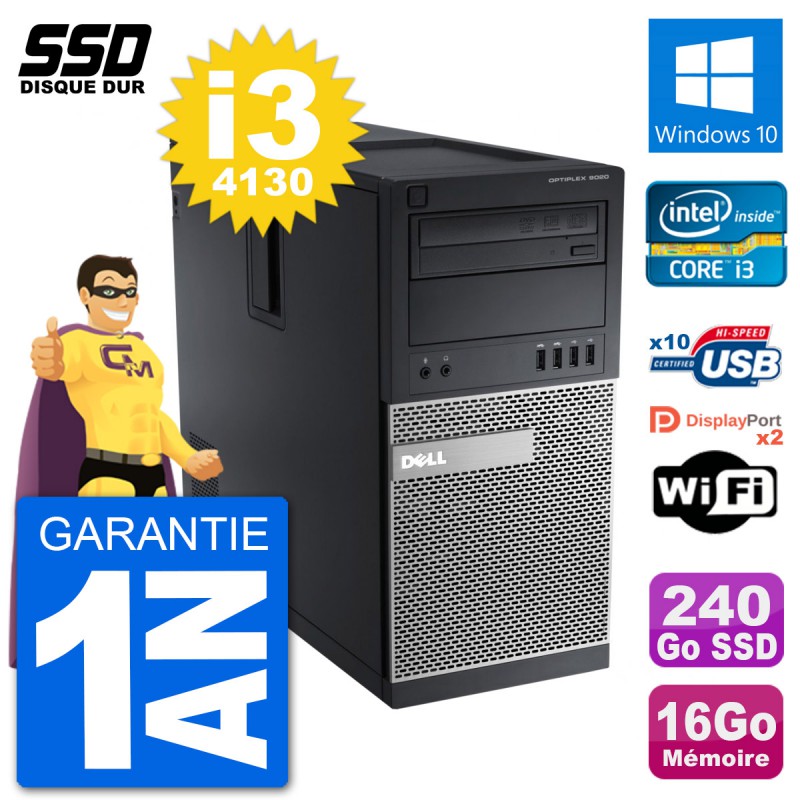 PC Dell Optiplex 9020 MT (Moyenne Tour) - Intel Core i3-4130 3.4 Ghz (3 Mo) - 16 Go DDR3 - Disque Dur SSD 240 Go - Graveur DVD - Clef Wifi USB - Windows 10 - Garantie 1 an.