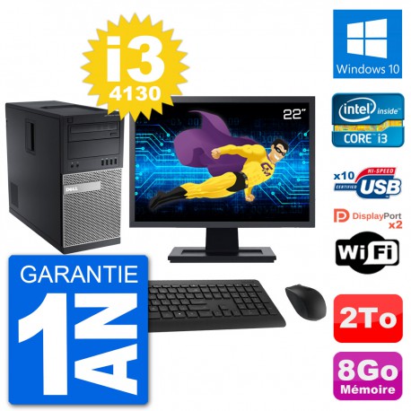 PC Dell 9020 MT - Intel Core i3-4130 3.4 Ghz (3 Mo) - 8 Go DDR3 - Disque Dur 3,5" 2 To - Graveur DVD - Clef Wifi USB - Windows 10 - Livré avec Ecran 22" + clavier + souris (Marques et modèles variables) - Garantie 1 an.