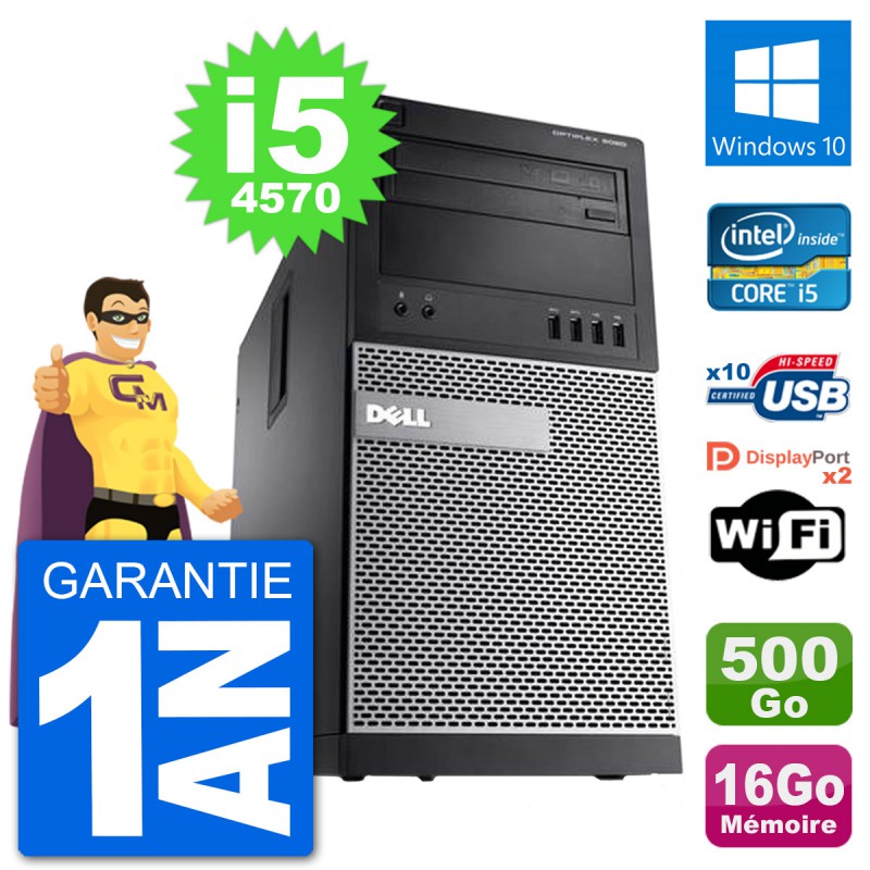 PC Dell Optiplex 9020 MT (Moyenne Tour) - Intel Core i5-4570 3.2 Ghz (6 Mo) - 16 Go DDR3 - Disque Dur 3,5" 500 Go - Graveur DVD - Clef Wifi USB - Windows 10 - Garantie 1 an.