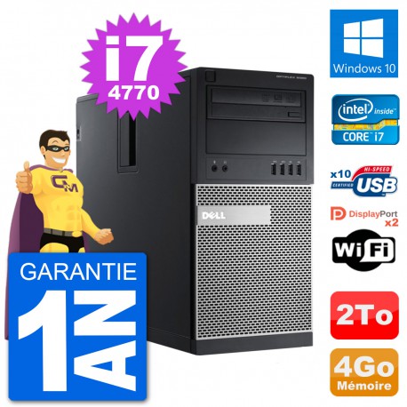 PC Dell Optiplex 9020 MT (Moyenne Tour) - Intel Core i7-4770 3.4 Ghz (8 Mo) - 4 Go DDR3 - Disque Dur 3,5" 2 To - Graveur DVD - Clef Wifi USB - Windows 10 - Garantie 1 an.
