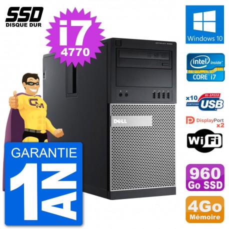 PC Dell Optiplex 9020 MT (Moyenne Tour) - Intel Core i7-4770 3.4 Ghz (8 Mo) - 4 Go DDR3 - Disque Dur SSD 960 Go - Graveur DVD - Clef Wifi USB - Windows 10 - Garantie 1 an.