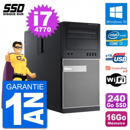 PC Dell Optiplex 9020 MT (Moyenne Tour) - Intel Core i7-4770 3.4 Ghz (8 Mo) - 16 Go DDR3 - Disque Dur SSD 240 Go - Graveur DVD - Clef Wifi USB - Windows 10 - Garantie 1 an.
