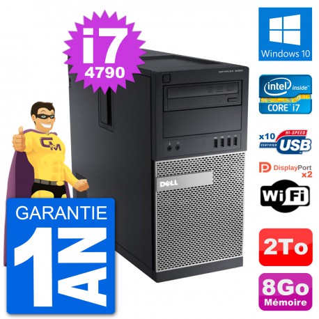 PC Dell Optiplex 9020 MT (Moyenne Tour) - Intel Core i7-4790 3.6 Ghz (8 Mo) - 8 Go DDR3 - Disque Dur 3,5" 2 To - Graveur DVD - Clef Wifi USB - Windows 10 - Garantie 1 an.