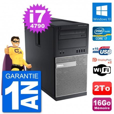 PC Dell Optiplex 9020 MT (Moyenne Tour) - Intel Core i7-4790 3.6 Ghz (8 Mo) - 16 Go DDR3 - Disque Dur 3,5" 2 To - Graveur DVD - Clef Wifi USB - Windows 10 - Garantie 1 an.