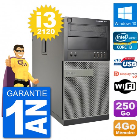 PC Tour Dell 7010 Intel Core i3-2120 RAM 4Go Disque Dur 250Go Windows 10 Wifi