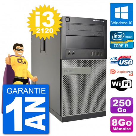 PC Tour Dell 7010 Intel Core i3-2120 RAM 8Go Disque Dur 250Go Windows 10 Wifi