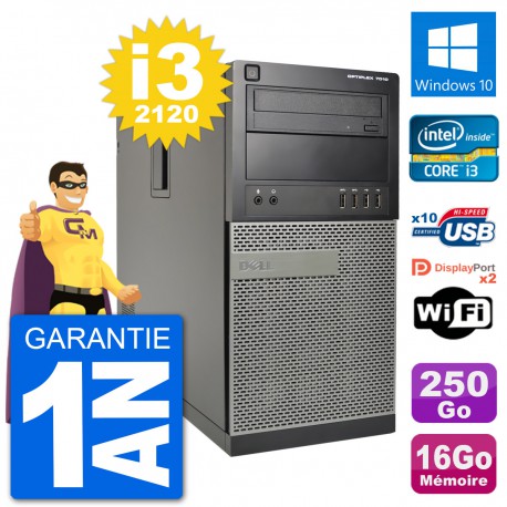 PC Tour Dell 7010 Intel Core i3-2120 RAM 16Go Disque Dur 250Go Windows 10 Wifi