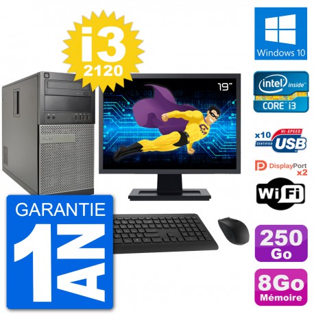 PC Dell 7010 MT - Intel Core i3-2120 3.3 Ghz (3 Mo) - 8 Go DDR3 - Disque Dur 3,5" 250 Go - Graveur DVD - Clef Wifi USB - Windows 10 - Livré avec Ecran 19" + clavier + souris (Marques et modèles variables) - Garantie 1 an.