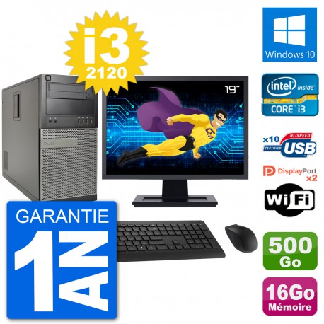PC Dell 7010 MT - Intel Core i3-2120 3.3 Ghz (3 Mo) - 16 Go DDR3 - Disque Dur 3,5" 500 Go - Graveur DVD - Clef Wifi USB - Windows 10 - Livré avec Ecran 19" + clavier + souris (Marques et modèles variables) - Garantie 1 an.