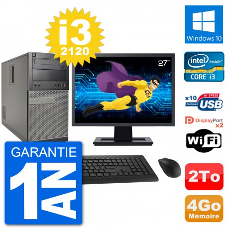 PC Dell 7010 MT - Intel Core i3-2120 3.3 Ghz (3 Mo) - 4 Go DDR3 - Disque Dur 3,5" 2 To - Graveur DVD - Clef Wifi USB - Windows 10 - Livré avec Ecran 27" + clavier + souris (Marques et modèles variables) - Garantie 1 an.