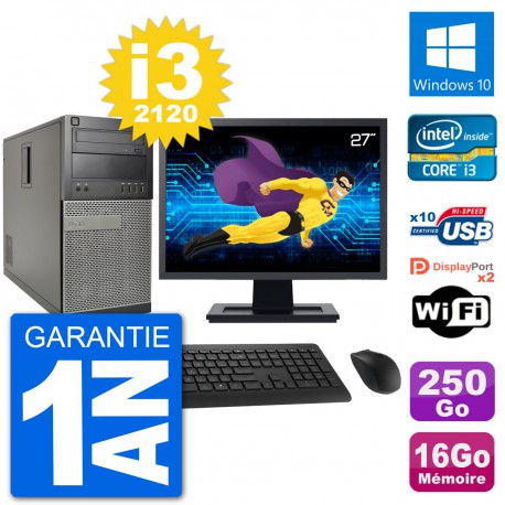 PC Dell 7010 MT - Intel Core i3-2120 3.3 Ghz (3 Mo) - 16 Go DDR3 - Disque Dur 3,5" 250 Go - Graveur DVD - Clef Wifi USB - Windows 10 - Livré avec Ecran 27" + clavier + souris (Marques et modèles variables) - Garantie 1 an.