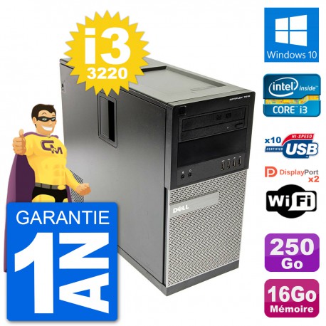 PC Tour Dell 7010 Intel Core i3-3220 RAM 16Go Disque Dur 250Go Windows 10 Wifi