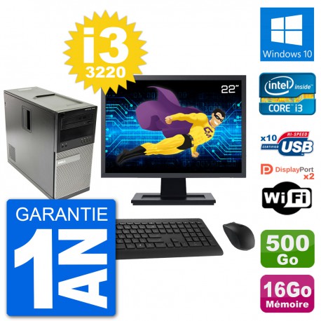 PC Dell 7010 MT - Intel Core i3-3220 3.3 Ghz (3 Mo) - 16 Go DDR3 - Disque Dur 3,5" 500 Go - Graveur DVD - Clef Wifi USB - Windows 10 - Livré avec Ecran 22" + clavier + souris (Marques et modèles variables) - Garantie 1 an.