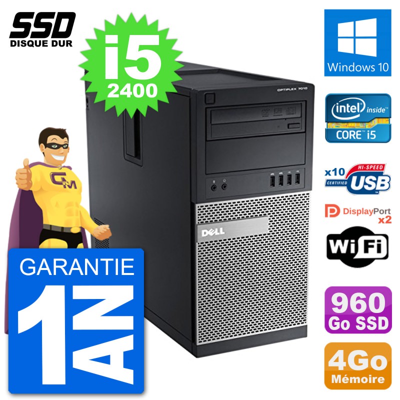 PC Dell Optiplex 7010 MT (Moyenne Tour) - Intel Core i5-2400 3.1 Ghz (6 Mo) - 4 Go DDR3 - Disque Dur SSD 960 Go - Graveur DVD - Clef Wifi USB - Windows 10 - Garantie 1 an.