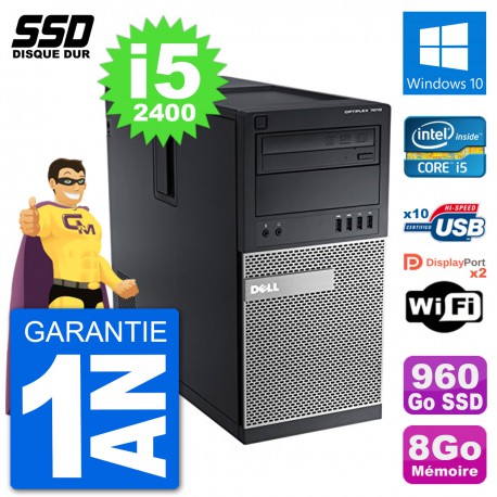 PC Dell Optiplex 7010 MT (Moyenne Tour) - Intel Core i5-2400 3.1 Ghz (6 Mo) - 8 Go DDR3 - Disque Dur SSD 960 Go - Graveur DVD - Clef Wifi USB - Windows 10 - Garantie 1 an.