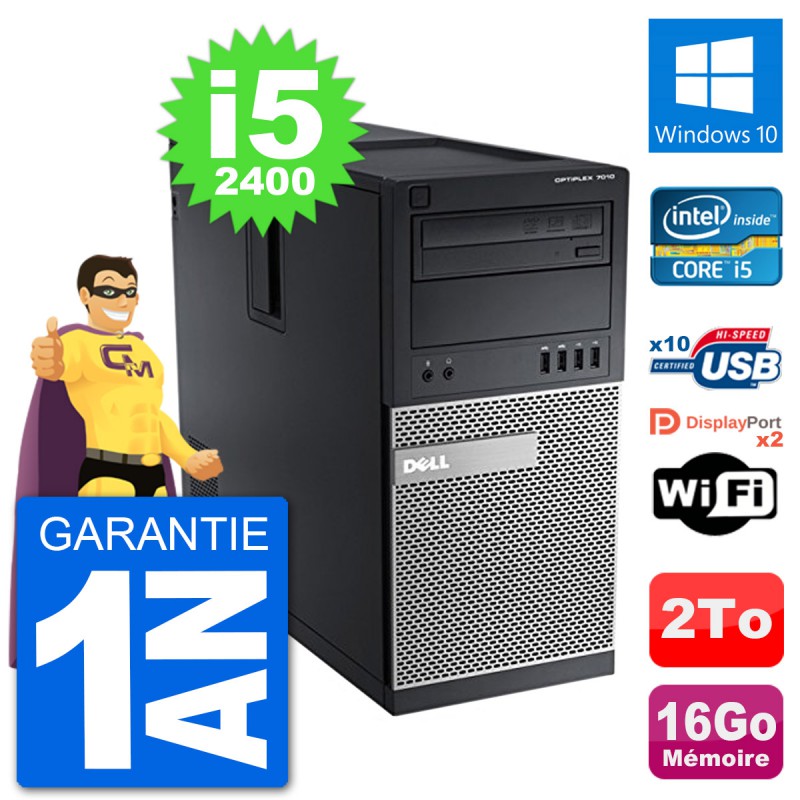 PC Dell Optiplex 7010 MT (Moyenne Tour) - Intel Core i5-2400 3.1 Ghz (6 Mo) - 16 Go DDR3 - Disque Dur 3,5" 2 To - Graveur DVD - Clef Wifi USB - Windows 10 - Garantie 1 an.