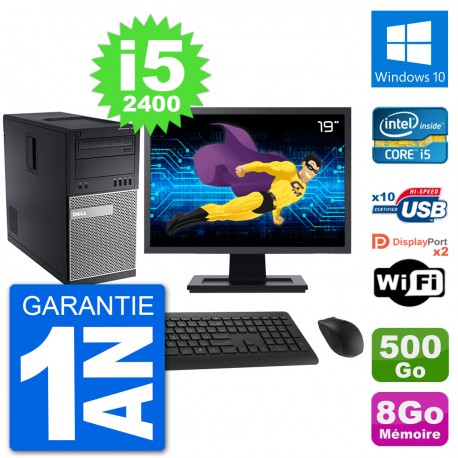PC Dell 7010 MT - Intel Core i5-2400 3.1 Ghz (6 Mo) - 8 Go DDR3 - Disque Dur 3,5" 500 Go - Graveur DVD - Clef Wifi USB - Windows 10 - Livré avec Ecran 19" + clavier + souris (Marques et modèles variables) - Garantie 1 an.