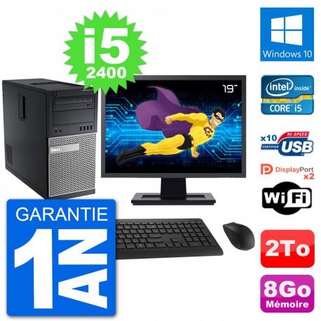 PC Dell 7010 MT - Intel Core i5-2400 3.1 Ghz (6 Mo) - 8 Go DDR3 - Disque Dur 3,5" 2 To - Graveur DVD - Clef Wifi USB - Windows 10 - Livré avec Ecran 19" + clavier + souris (Marques et modèles variables) - Garantie 1 an.