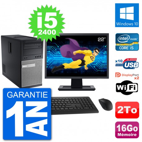 PC Dell 7010 MT - Intel Core i5-2400 3.1 Ghz (6 Mo) - 16 Go DDR3 - Disque Dur 3,5" 2 To - Graveur DVD - Clef Wifi USB - Windows 10 - Livré avec Ecran 22" + clavier + souris (Marques et modèles variables) - Garantie 1 an.
