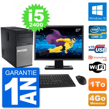 PC Dell 7010 MT - Intel Core i5-2400 3.1 Ghz (6 Mo) - 4 Go DDR3 - Disque Dur 3,5" 1 To - Graveur DVD - Clef Wifi USB - Windows 10 - Livré avec Ecran 27" + clavier + souris (Marques et modèles variables) - Garantie 1 an.