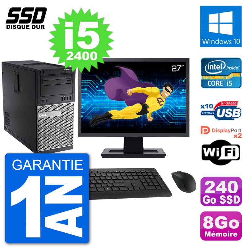 PC Dell 7010 MT - Intel Core i5-2400 3.1 Ghz (6 Mo) - 8 Go DDR3 - Disque Dur SSD 240 Go - Graveur DVD - Clef Wifi USB - Windows 10 - Livré avec Ecran 27" + clavier + souris (Marques et modèles variables) - Garantie 1 an.