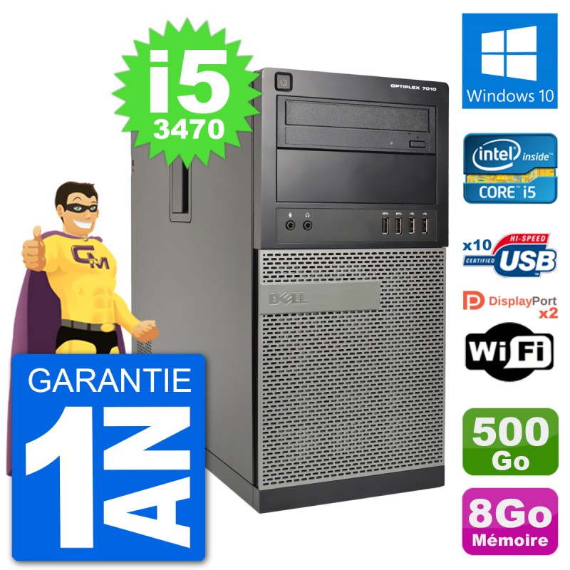 PC Dell Optiplex 7010 MT (Moyenne Tour) - Intel Core i5-3470 3.2 Ghz (6 Mo) - 8 Go DDR3 - Disque Dur 3,5" 500 Go - Graveur DVD - Clef Wifi USB - Windows 10 - Garantie 1 an.