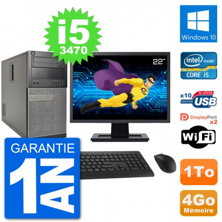 PC Dell 7010 MT - Intel Core i5-3470 3.2 Ghz (6 Mo) - 4 Go DDR3 - Disque Dur 3,5" 1 To - Graveur DVD - Clef Wifi USB - Windows 10 - Livré avec Ecran 22" + clavier + souris (Marques et modèles variables) - Garantie 1 an.