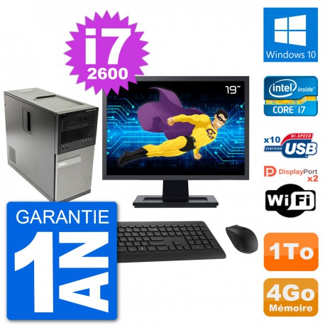 PC Tour Dell 7010 Ecran 19" Intel i7-2600 RAM 4Go Disque 1To Windows 10 Wifi