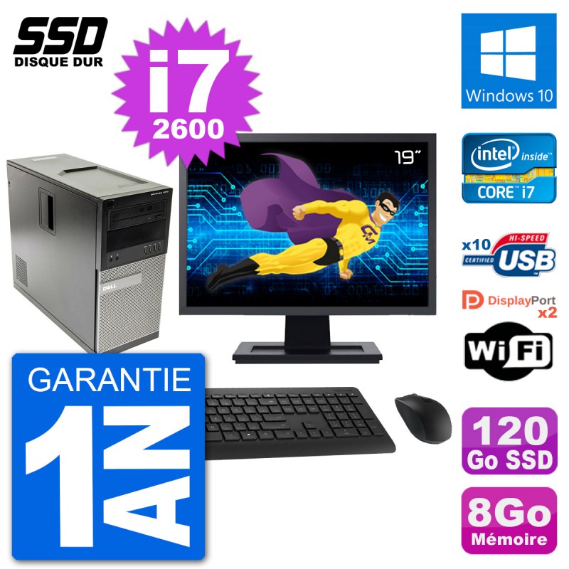 PC Dell 7010 MT - Intel Core i7-2600 3.4 Ghz (8 Mo) - 8 Go DDR3 - Disque Dur SSD 120 Go - Graveur DVD - Clef Wifi USB - Windows 10 - Livré avec Ecran 19" + clavier + souris (Marques et modèles variables) - Garantie 1 an.