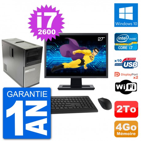 PC Dell 7010 MT - Intel Core i7-2600 3.4 Ghz (8 Mo) - 4 Go DDR3 - Disque Dur 3,5" 2 To - Graveur DVD - Clef Wifi USB - Windows 10 - Livré avec Ecran 27" + clavier + souris (Marques et modèles variables) - Garantie 1 an.