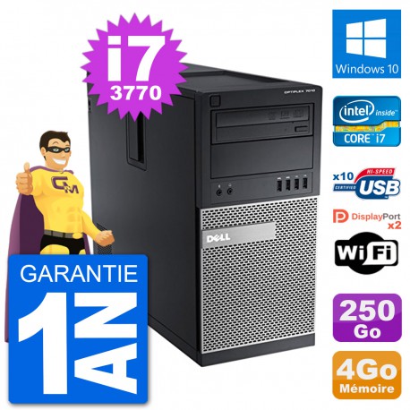 PC Dell Optiplex 7010 MT (Moyenne Tour) - Intel Core i7-3770 3.4 Ghz (8 Mo) - 4 Go DDR3 - Disque Dur 3,5" 250 Go - Graveur DVD - Clef Wifi USB - Windows 10 - Garantie 1 an.