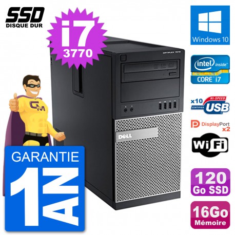 PC Dell Optiplex 7010 MT (Moyenne Tour) - Intel Core i7-3770 3.4 Ghz (8 Mo) - 16 Go DDR3 - Disque Dur SSD 120 Go - Graveur DVD - Clef Wifi USB - Windows 10 - Garantie 1 an.