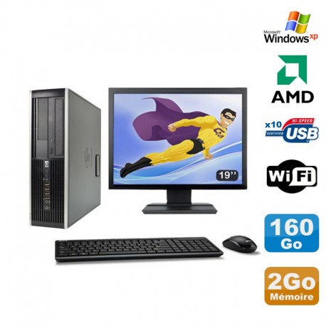 PC HP Compaq 6005 Pro SFF AMD 3GHz - RAM 2 Go DDR3 - Disque dur 160Go SATA - Graveur DVD - Windows Xp - Clé WIFI USB - Pack Écran 19"/Clavier/Souris (Marques et modèles selon arrivages) - Garantie 6 mois.