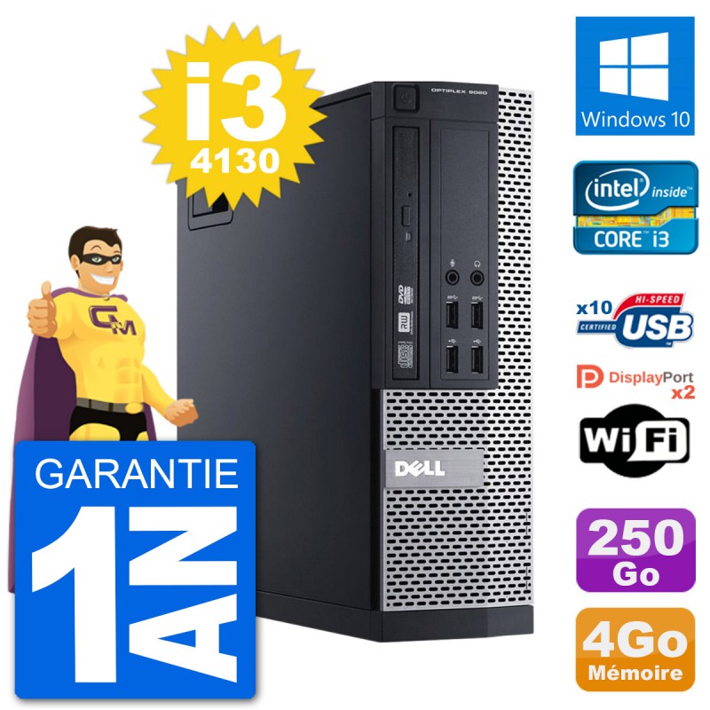 PC Dell 9020 SFF Intel Core i3-4130 RAM 4Go Disque Dur 250Go Windows 10 Wifi