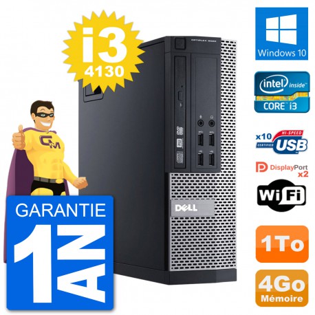PC Dell Optiplex 9020 SFF (Slim) - Intel Core i3-4130 3.4 Ghz (3 Mo) - 4 Go DDR3 - Disque Dur 3,5" 1 To - Graveur DVD - Clef Wifi USB - Windows 10 - Garantie 1 an.