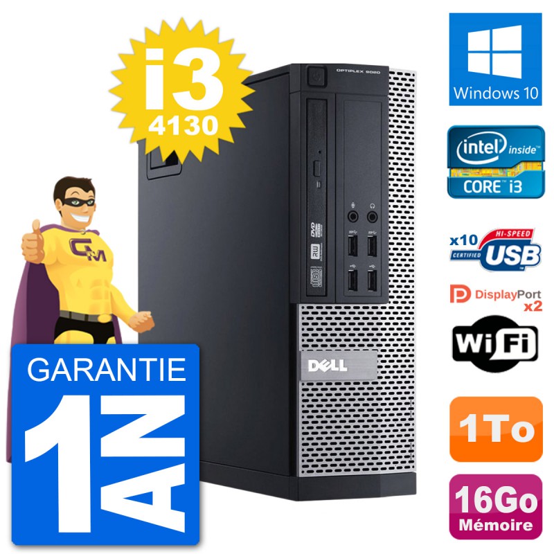 PC Dell 9020 SFF Intel Core i3-4130 RAM 16Go Disque Dur 1To Windows 10 Wifi